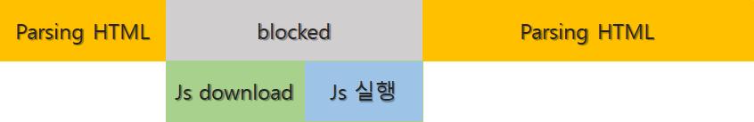 브라우저가 HTML 코드를 읽어내려오다가 script 태그를 만나게 되면, 해당 파일을 다운로드하고 실행시키기 위해 HTML을 읽어오는 과정을 잠깐 멈추게 됩니다. 그리고 해당파일을 모두 다운로드하고 실행을 시킨 이후에 다시 나머지 HTML 코드를 읽게 되는데요. 이렇게 할 경우 아래와 같은 단점이 생기게 됩니다.